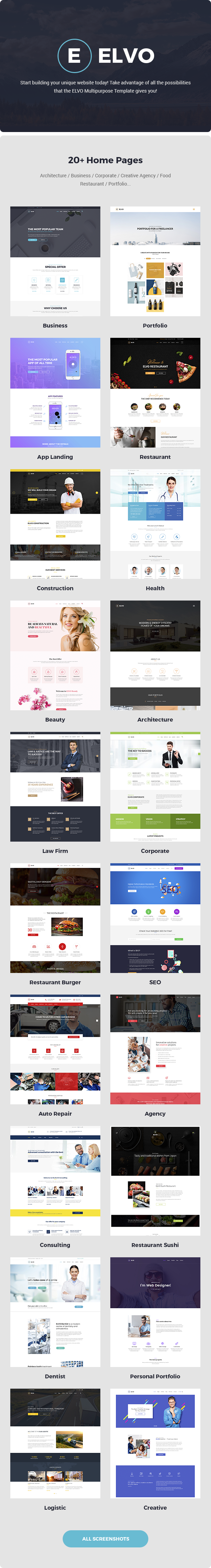 ELVO is a universal template that has been designed for various industries. You can use it for a variety of business and institutions. The template is fully editable which allows you to build new home pages, subpages, and create different layouts.