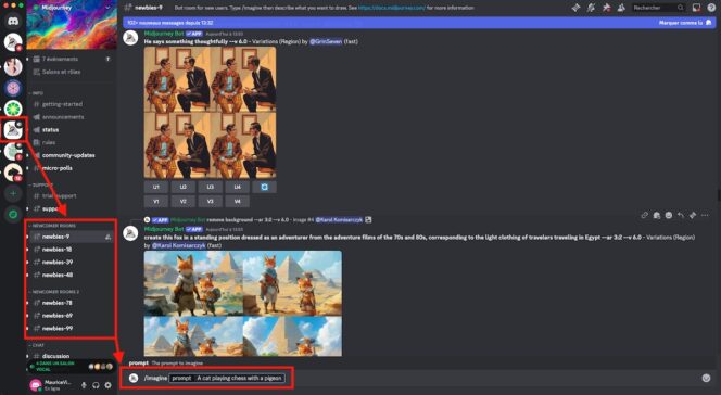 Rejoignez le serveur de Midjourney, puis les salons de création, pour générer vos images. © Montage BDM