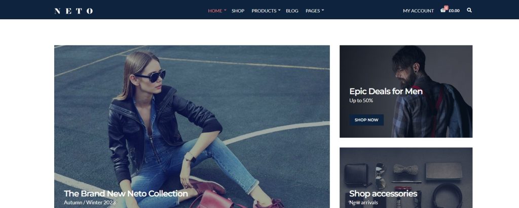 The theme offers flexible headers that allow you to personalize your site’s header with different options. You can adjust the color scheme, layout, font, and logo to make it your own. Neto’s user-friendly interface also lets you see real-time previews of your changes.
