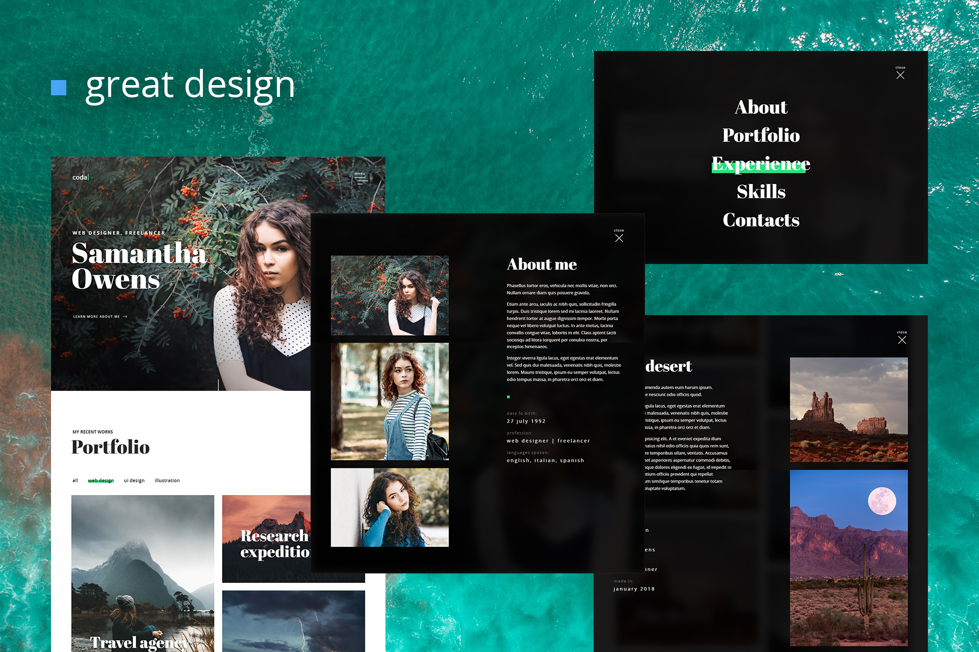 Coda is a responsive, retina-ready, fully-featured HTML5 template. This template has extensive features for simple customization, thanks to clean and well-commented code. And with a simple and unique design, your site will be user-friendly. This is a truly multi-purpose template which is suitable for a wide variety of websites: CV, vCard, resume, portfolio.