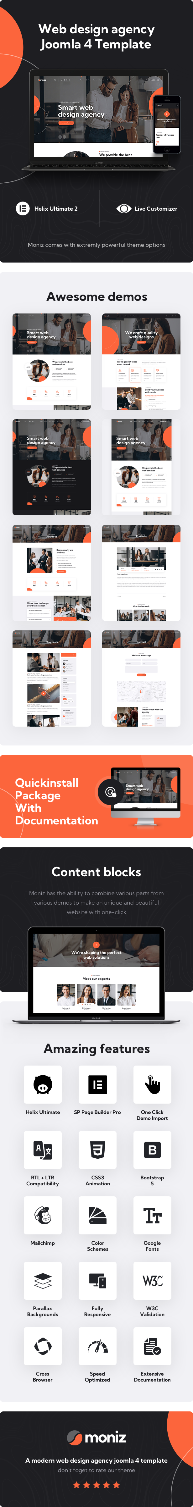 Moniz is a modern creative multipurpose web design agency Joomla 5 template. Which fits for all agencies whether you are a web agency, freelancer, web design company, web designer, digital marketing or any type of design agency websites and businesses. We got you covered.