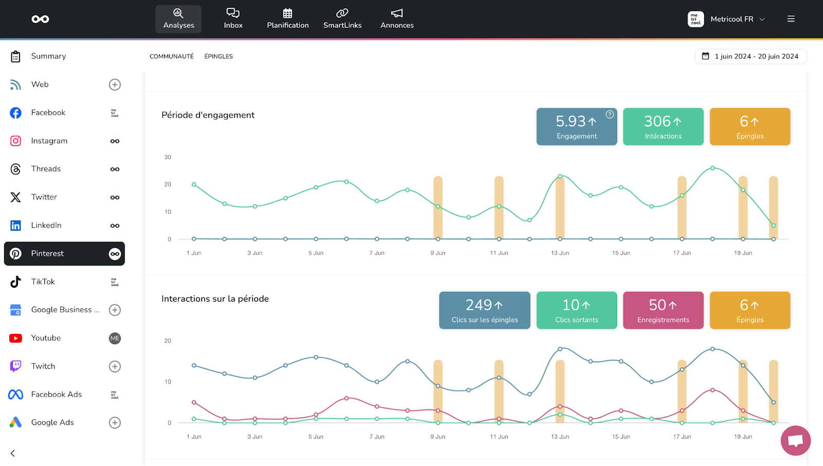 Découvrez aussi Metricool, votre allié pour planifier vos épingles à l’avance, analyser vos statistiques et créer une page de liens personnalisée pour vos affiliations.