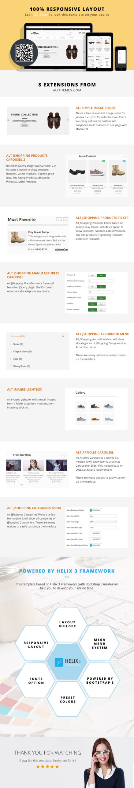 Up to 8 Extensions from AliThemes: Alt Articles Carousel, Alt Images Lightbox, Alt JShopping Accordion Menu, Alt JShopping Categories Menu, Alt JShopping Manufacturers Carousel, Alt JShopping Products Carousel 2, Alt JShopping Products Ticker, Alt Simple Image Slider. (Save $40+)