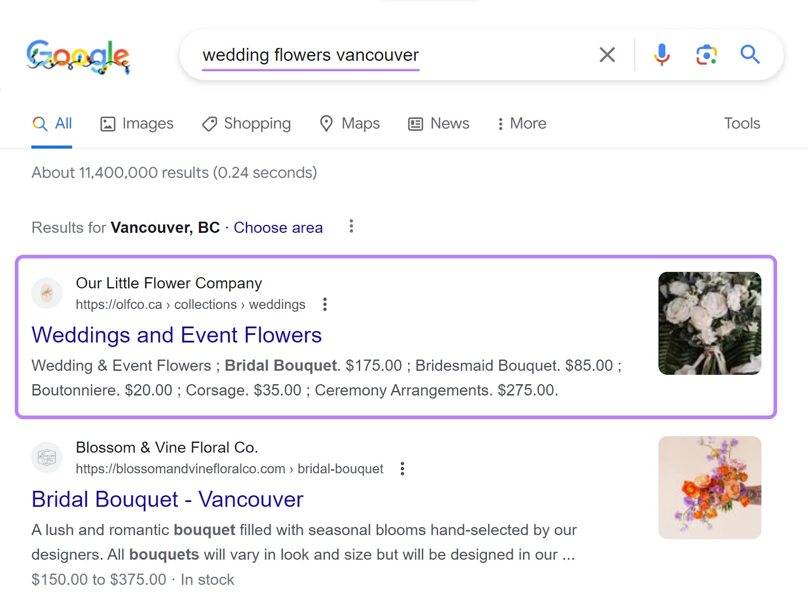 Certains types de données structurées produisent des résultats riches qui permettent à ton site Shopify de se démarquer des résultats traditionnels.
