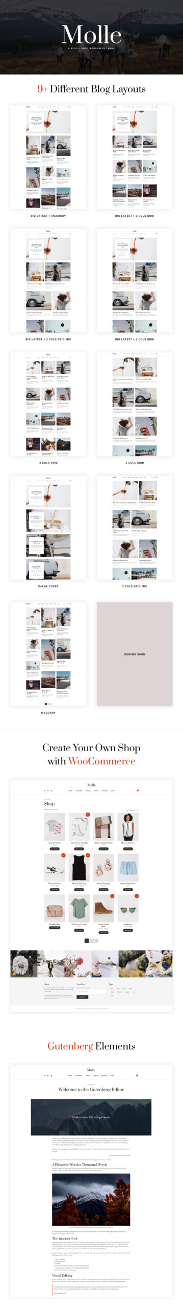 Clean, bright, and classy, Molle is an airy WordPress blog theme designed to stage your content in structured elegance.