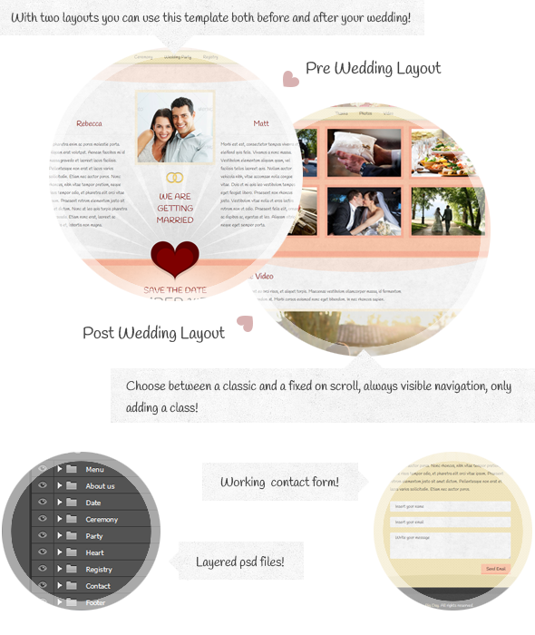The Big Day is a responsive one-page wedding HTML template, built for couples who are looking for something different then standard invitation.