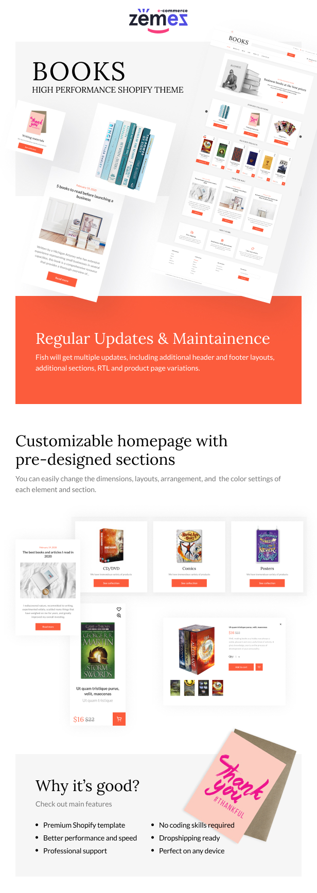 Bookstore, nowadays, become a major hit while people prefer shopping for books online. We have developed this Shopify books online store template in order to help you to create a successful eCommerce business based on selling books of any kind.