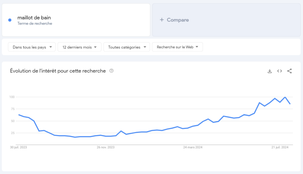 Si vous constatez une baisse de trafic sur votre site, cela peut être expliqué par des tendances de consommation saisonnières : si vous vendez des maillots de bain, il est normal de constater une baisse de septembre à mars.