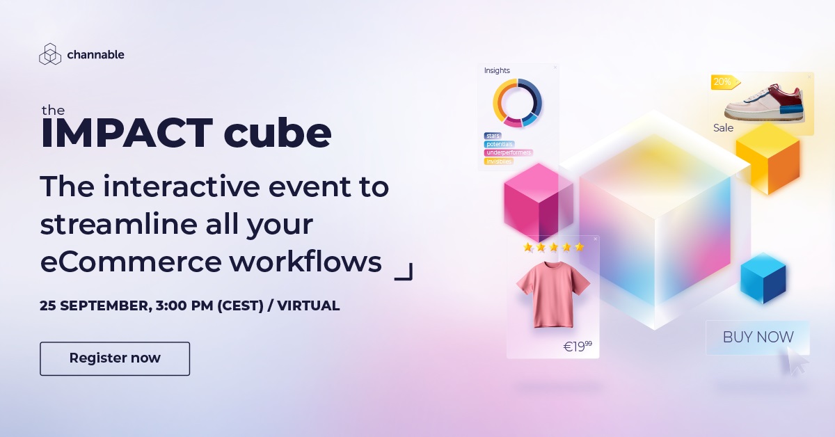 Channable, la plateforme e-commerce multicanal spécialisée dans la gestion de flux produits et l’automatisation SEA, organise la nouvelle édition de The IMPACT Cube, son événement interactif en ligne à destination des professionnels du marketing digital et du e-commerce, le 25 septembre à 15h. L’objectif : vous apporter toutes les clés afin de vous aider à optimiser votre stratégie de vente en ligne grâce aux conseils et aux retours d’expérience d’experts internationaux, en anglais.