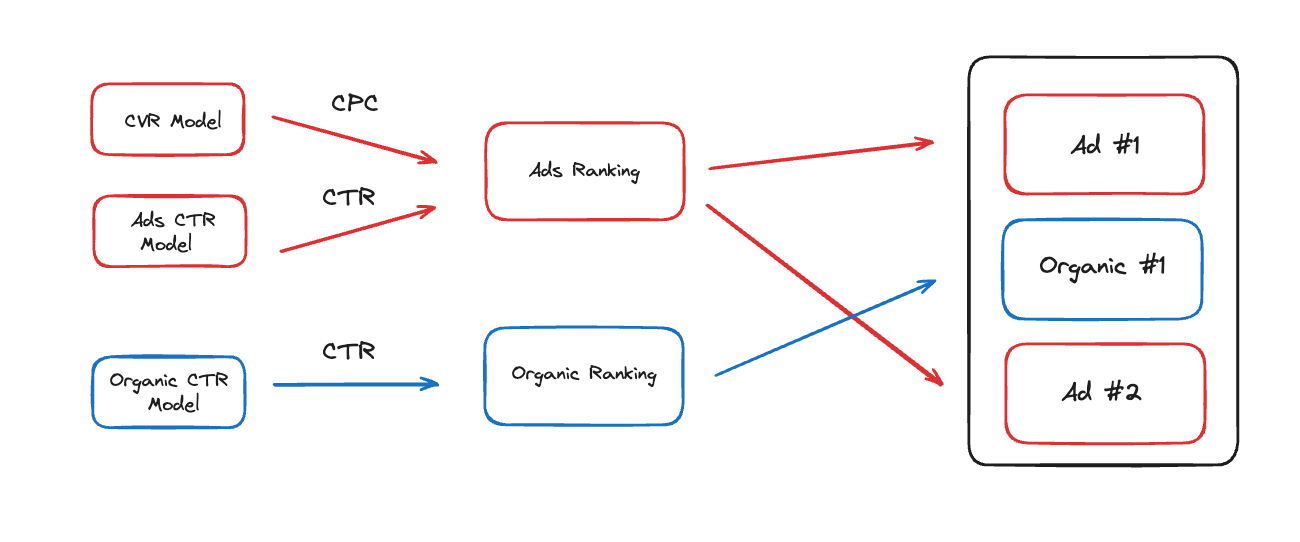 - Estimating eCPM for both organic items and ads.