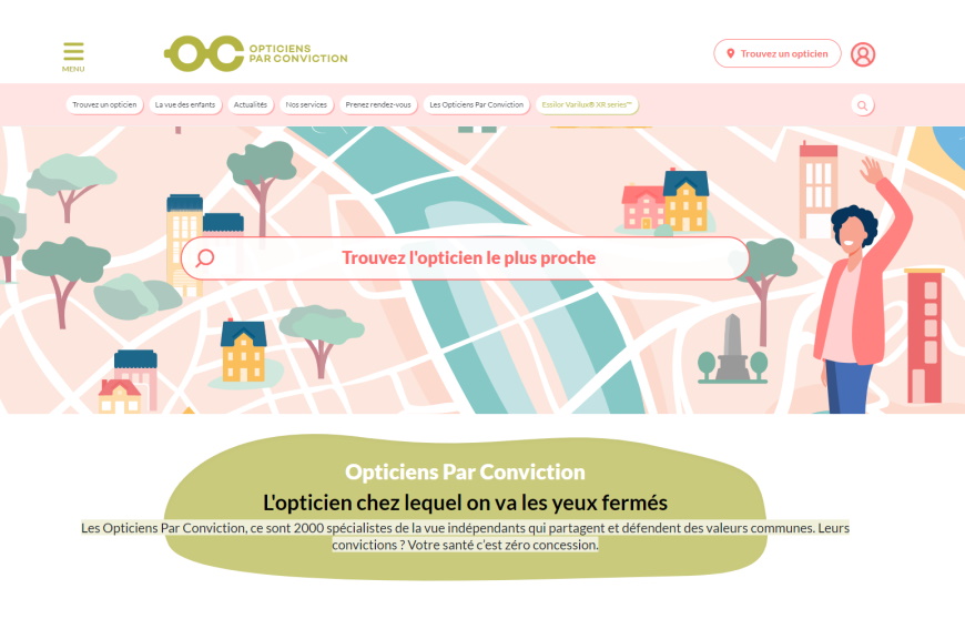 L’objectif principal d’Opticiensparconviction.fr est de convertir les internautes en clients, en les attirant avec des sujets pertinents (santé visuelle, tendances, technologie…) et en les orientant vers les opticiens adhérents du Groupe All (affichage des fiches magasins et du module de prise de rendez-vous sur chaque page du site). « Dans un marché en pleine mutation, marqué par la baisse du bouche-à-oreille traditionnel, la transition digitale et le détournement de la clientèle par les réseaux d’assurance, la captation de nouveaux clients est stratégique », argumente la centrale. Elle a entrepris cette année une refonte complète de ses outils de marketing digital et de ses supports print, pour renforcer l’expérience client et l’engagement pour la santé visuelle. « Grâce à l’hyperpersonnalisation, chaque opticien peut désormais valoriser ses particularités, son engagement et ses offres de manière unique. »