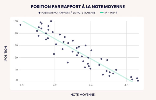 Plus une fiche tend vers une note de 5 sur 5, plus sa position est proche de la première place.