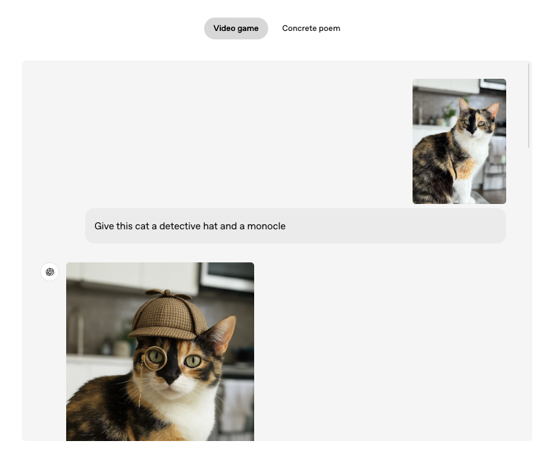 - Référence d’images existantes : En uploadant une image, les utilisateurs peuvent demander à ChatGPT de s’en inspirer pour produire une variante ou la transformer.