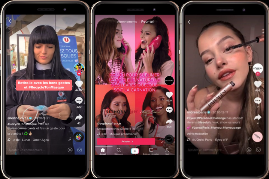 Pour eux, quatre scénarios de vente sont possibles : un peu comme sur les autres plateformes, la marque peut avoir son onglet dédié à sa boutique en ligne sur TikTok et son fil de produits. Si cela était déjà possible avant, ces objets sont aujourd’hui “achetables” directement en restant dans la plateforme. En plus, et c’est la la spécificité de l’interface, des vidéos courtes permettent de visualiser une référence afin de l’acheter en quelques clics, et des vidéos de live shopping permettent aussi de déclencher l’achat des quelque 25 millions de Français présents sur TikTok en France.