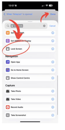 This method uses the Shortcuts app to create an automation that simulates locking an app.