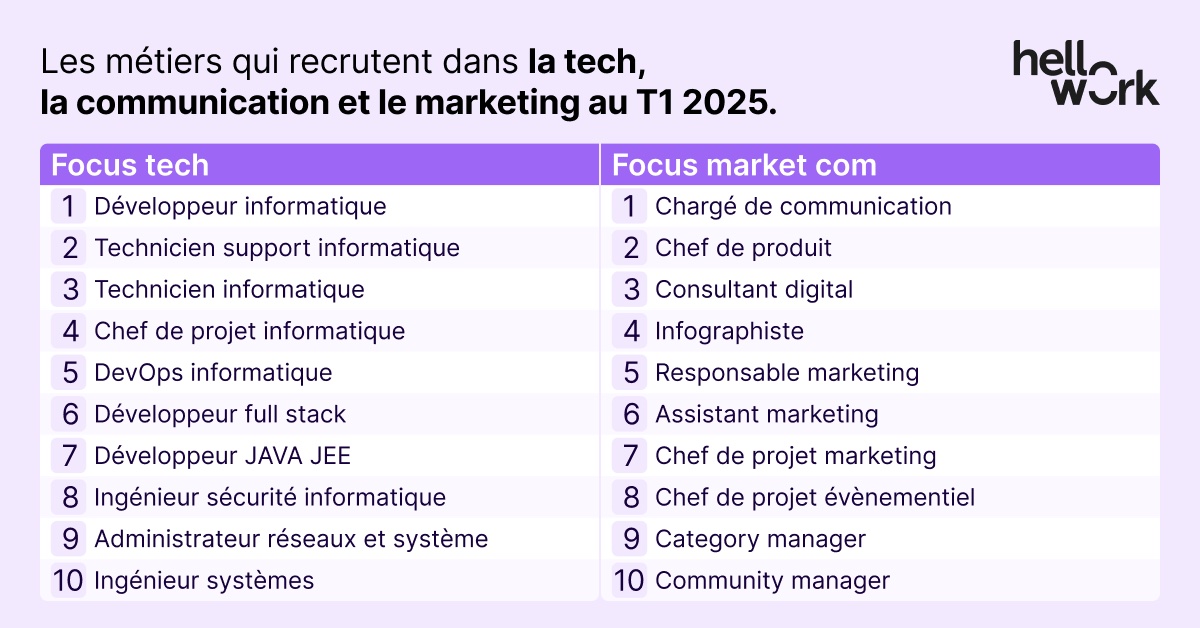 Les 20 métiers tech et marketing les plus recherchés par les recruteurs au 1er trimestre 2025