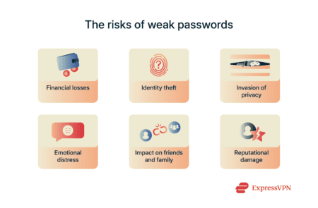 Weak passwords make it much simpler for unauthorized users to log into your accounts, which could lead to: