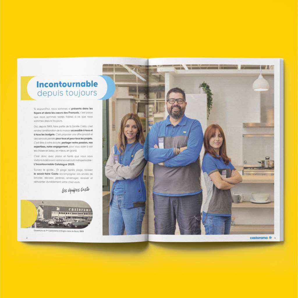 Marie-Laure Cassé : L’envie de prendre le contre-pied et de renouer avec l’ADN de Castorama. D’abord pour les collaborateurs eux-mêmes, émus de revoir ce format ancré dans l’histoire de l’enseigne. Ensuite pour les clients, en créant un bel objet qui invite à prendre le temps, réfléchir, lire, partager, dans une société qui va vite.