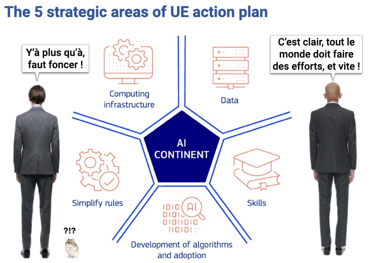 Formulé autrement : plus on utilise l’IA et plus l’IA devient indispensable. Encore un signal qui vient renforcer l’éventualité d’une hégémonie à moyen terme des chatbots et assistants. Et pendant ce temps-là, la réponse à la question de la souveraineté européenne se fait attendre. Il y a bien un code de bonne conduite et un plan d’action (General-Purpose AI Code of Practice et AI Continent Action Plan), mais tout ceci semble bien théorique.