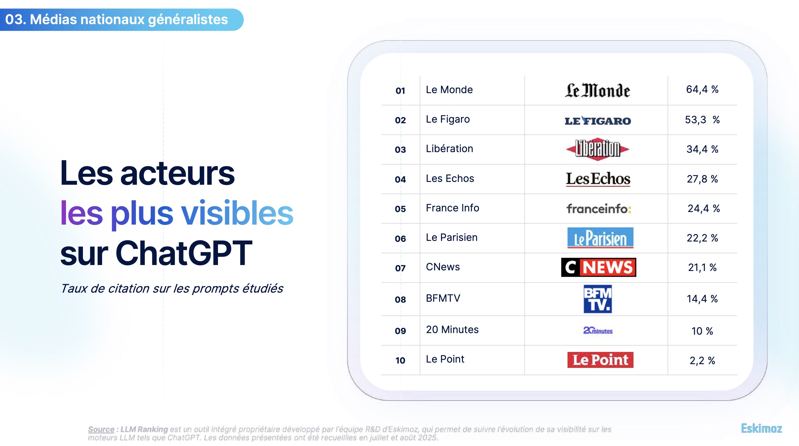Un aperçu de la visibilité des médias dans ChatGPT – Source : Eskimoz