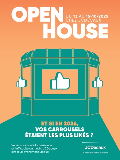 JCDecaux ouvre ses portes à l’occasion de son événement Open House 2025, qui se tient les 13, 14 et 15 octobre en son siège 17 rue Soyer à Neuilly-sur-Seine. Jean Muller, directeur général commerce, marketing et développement FLIB (France, Luxembourg, Israël et Belgique) et Alban Duron, directeur marketing, du numéro un mondial de la communication extérieure, ont tracé les contours de cet événement en expliquant que cette nouvelle édition sont dédiés “à la puissance du média et à la mesure de son efficacité. Ce média du réel, le seul qui progresse au premier semestre selon le dernier BUMP (+0,3%) et qui ambitionne d’atteindre 9,7% de parts de marché d’ici 2028. Contre 7,8% aujourd’hui”. Concernant la mesure de l’OOH, les données Mobimétrie proposent aujourd’hui une vision juste avec une précision du contact, une finesse à l’adresse, à l’heure pour une mesure sans couture de l’outdoor et de l’indoor. Ainsi qu’une mesure full funnel, à la campagne. Sans oublier la mesure d’impact Empreinte 360 déployée dans cinq pays : France, Allemagne, Italie, Brésil et Etats-Unis. Open House c’est l’occasion aussi de présenter les innovations comme Brand Signature. La nouvelle entité a déjà séduit les Maisons de la presse (13 000 adresses en France). Le siège de Neuilly s’habillera en Stratus. La solution qui scénographie en XXL une adresse d’une manière remarquable. On verra également à l’œuvre la nouvelle plateforme de création d’affiches boostée à l’IA, développée avec The Maikers, qui vise les annonceurs locaux qui prennent la main sur leur diffusions de campagnes. Une expérimentation est menée en ce moment avec Orpi par exemple. Enfin, on pourra se familiariser avec le programmatique déjà à l’œuvre dans plus de 30 pays avec 12 milliards d’impressions