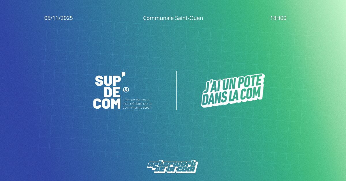 L’Afterwork de la com ne serait pas ce qu’il est sans ses partenaires. Parmi eux, SUP’DE COM se distingue cette année comme un partenaire engagé, prêt à inspirer et accompagner les talents de demain !