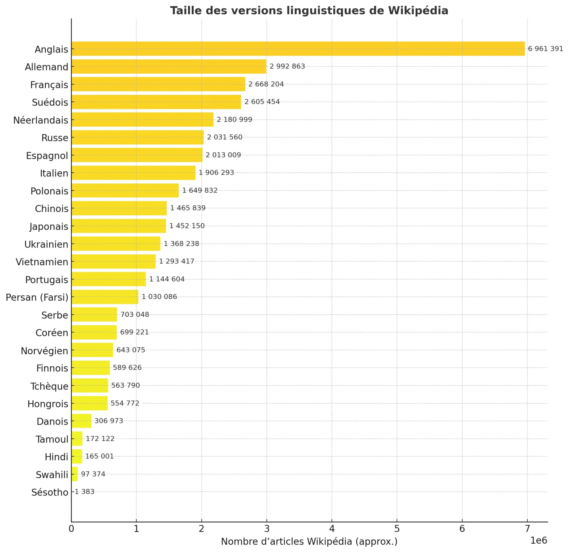 Le tableau ci-dessous récapitule les langues étudiées, leur système d’écriture, le nombre approximatif de locuteurs natifs et le volume d’articles disponibles sur Wikipédia, indicateur de la richesse du corpus textuel disponible pour l’entraînement des modèles d’IA.