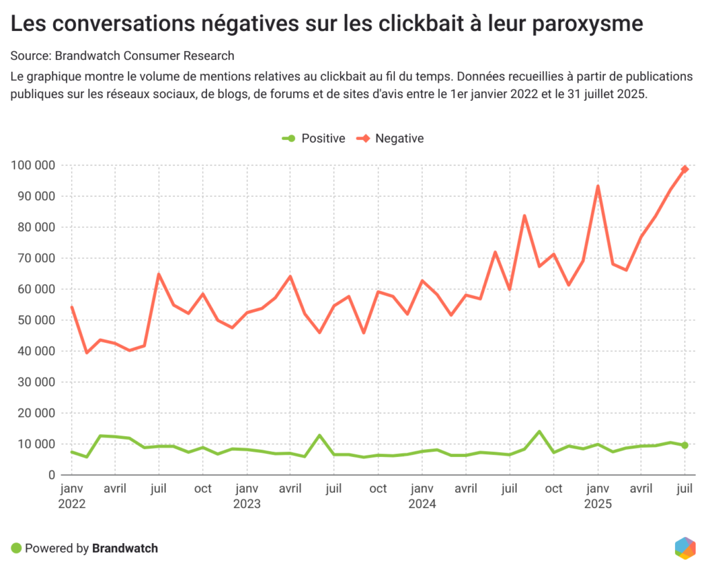 Les conversations sur le clickbait ont explosé au cours des trois dernières années et, en 2025, près de 90 % des mentions étaient négatives. Plus de la moitié (54 %) des conversations en ligne liées à la publicité expriment la colère. Les internautes expriment leur frustration face aux pièges à clics, à la surabondance de publicités et même aux abonnements payants qui diffusent encore des publicités. L’essor des bloqueurs de publicités met en évidence une priorité claire des consommateurs : le contrôle de leur expérience numérique. Les publicités ne sont pas condamnées à disparaître, mais elles doivent évoluer. Les consommateurs réclament des campagnes créatives et pertinentes qui ajoutent de la valeur au lieu d’interrompre leur expérience. Sur les réseaux sociaux, la crédibilité est essentielle à la résonance du contenu publicitaire. Plus les campagnes sont ciblées, plus lamarque a de chances de susciter des réactions positives.