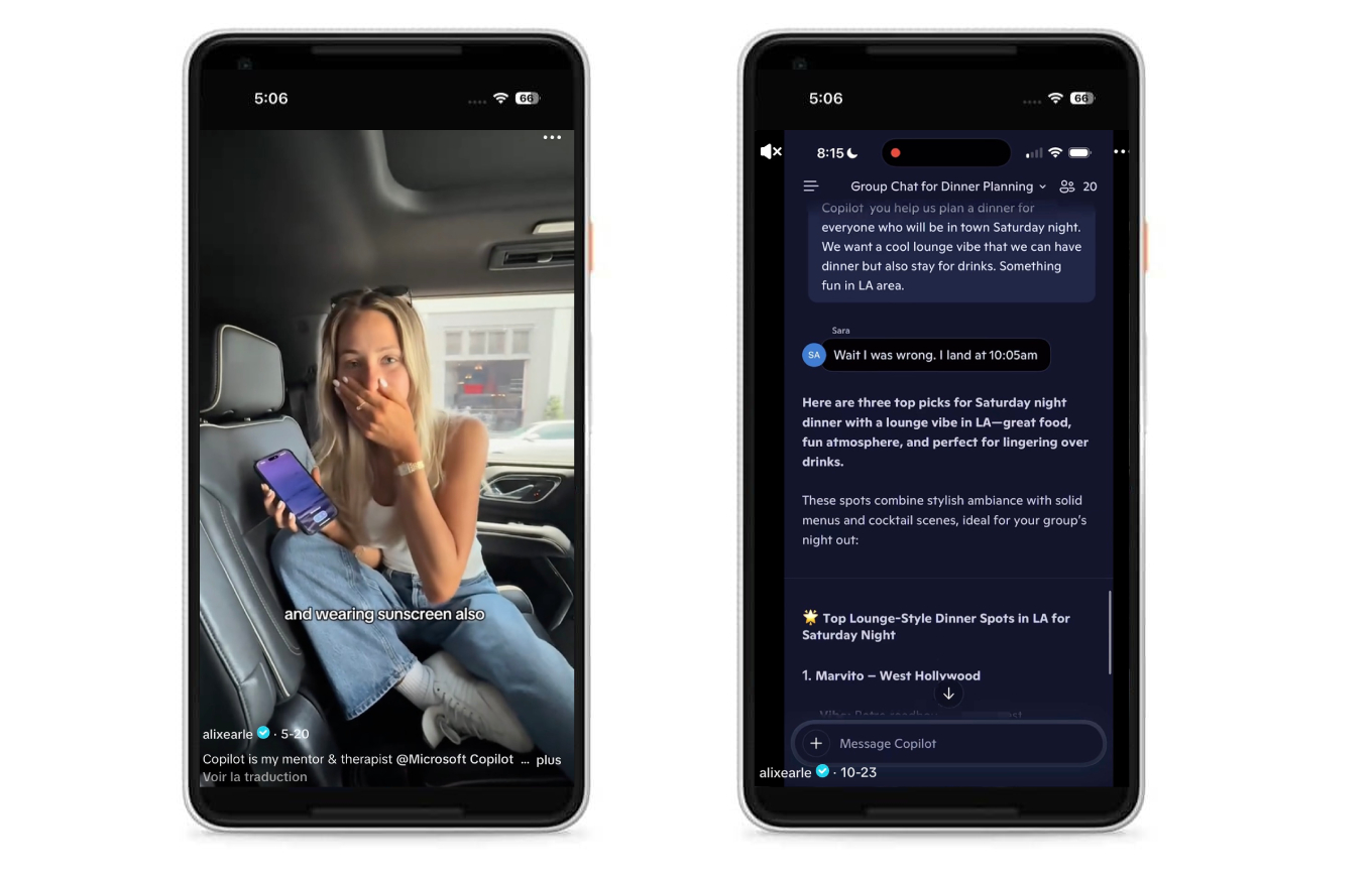 Alix Earle, star d’Instagram et TikTok avec plus de 12 millions d’abonnés, a ainsi publié plusieurs vidéos humoristiques vantant les capacités de Copilot. Dans l’une d’elles, elle demande à l’IA comment paraître plus jeune, une séquence devenue virale avec plus de 15 millions de vues.