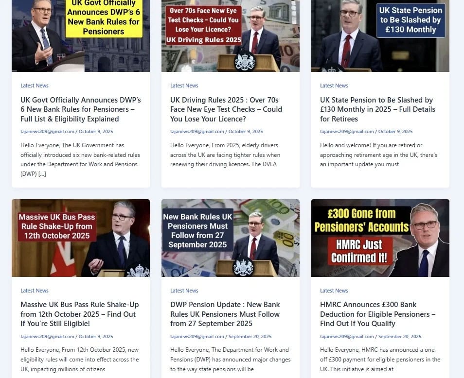 Un autre article frauduleux affirmant des changements dans les règles d’utilisation des cartes de bus au Royaume-Uni a été consulté par 1,85 million d’utilisateurs. Ces contenus se retrouvent hébergés sur des sites aux domaines improbables : sites d’événements abandonnés, projets expirés, et même des sites d’écoles comme « Prashant High School ».