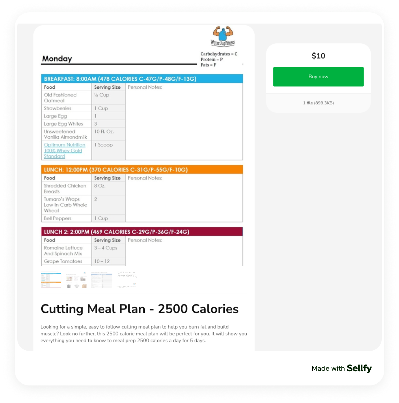 We already talked about Water Jug Fitness, a popular fitness instructor who helps his audience with printable meal plans available in his Sellfy store.