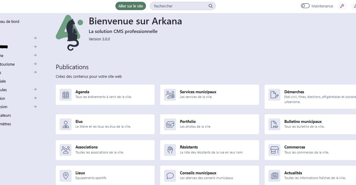 Arkana est un système de gestion de contenus (CMS) conçu et développé en France, permettant de créer et d’administrer des sites web professionnels, qu’il s’agisse d’une boutique en ligne, d’une plateforme de réservation, d’un site vitrine ou d’un portail institutionnel.