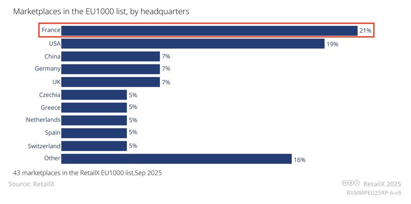 Ce baromètre s’inscrit dans une tendance de fond observée à l’échelle européenne. Selon une étude récente de RetailX (Europe’s Marketplaces 2025), 21 % des marketplaces du classement EU1000 ont leur siège en France, soit plus que tout autre pays européen, et devant les États-Unis (19 %), l’Allemagne, le Royaume-Uni ou la Chine (7 % chacun).